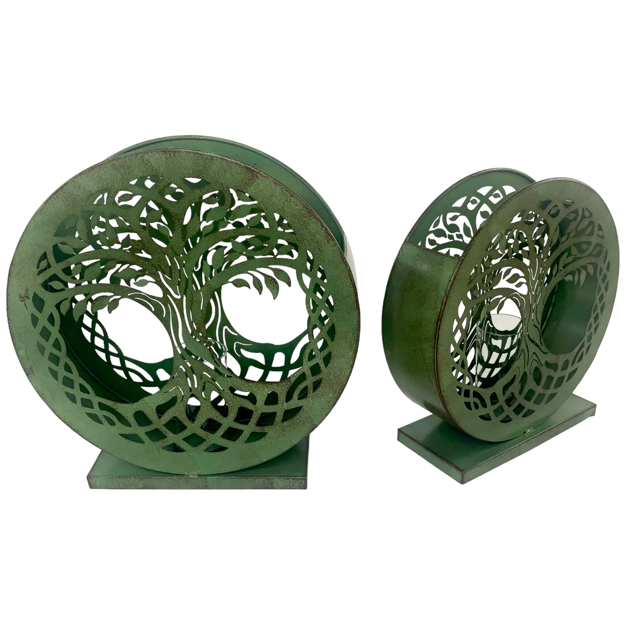 Set of 2 Candle Holders with Glass Vase – Filigree Tree – Verdi Finish